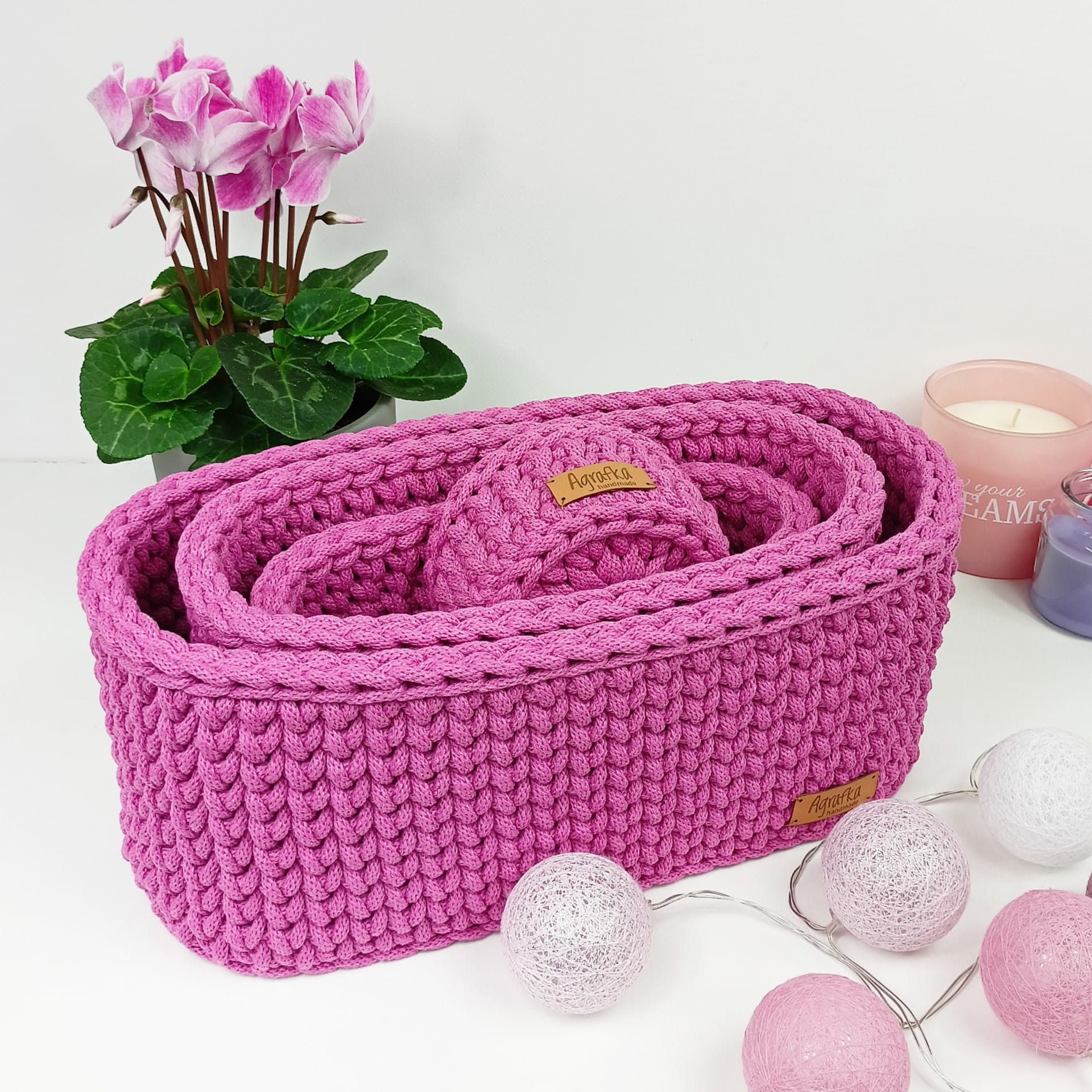 Dzięki szerokiej gamie kolorów koszyk łatwo dopasować do różnych stylów wnętrz – od naturalnych po nowoczesne. Każdy koszyk tworzony jest ręcznie, z dbałością o detale i jakość wykonania.