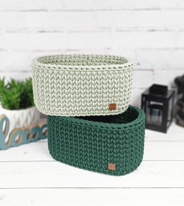 Ręcznie robiony koszyk owalny ze sznurka bawełnianego. Praktyczny organizer do domu, dostępny w szerokiej gamie kolorystycznej i kilku rozmiarach.