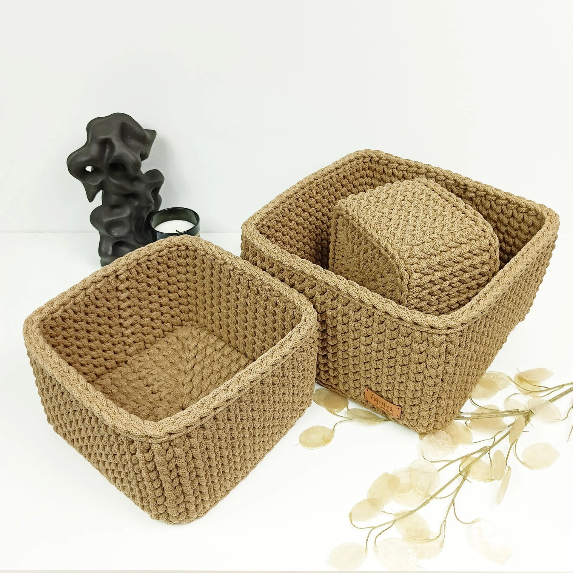 Ręcznie wykonany koszyk kwadratowy ze sznurka bawełnianego to funkcjonalny dodatek do każdego wnętrza. Dzięki swojej stabilnej formie i pojemnej konstrukcji świetnie sprawdzi się jako organizer na zabawki, tekstylia, akcesoria czy inne codzienne przedmioty.