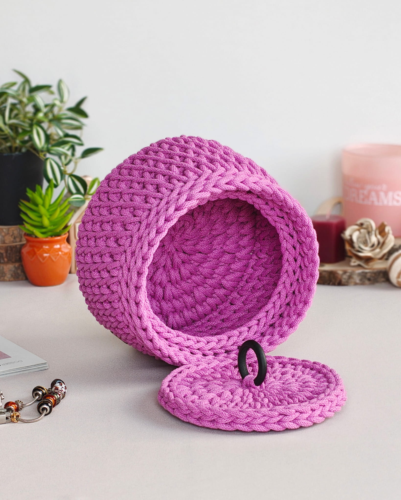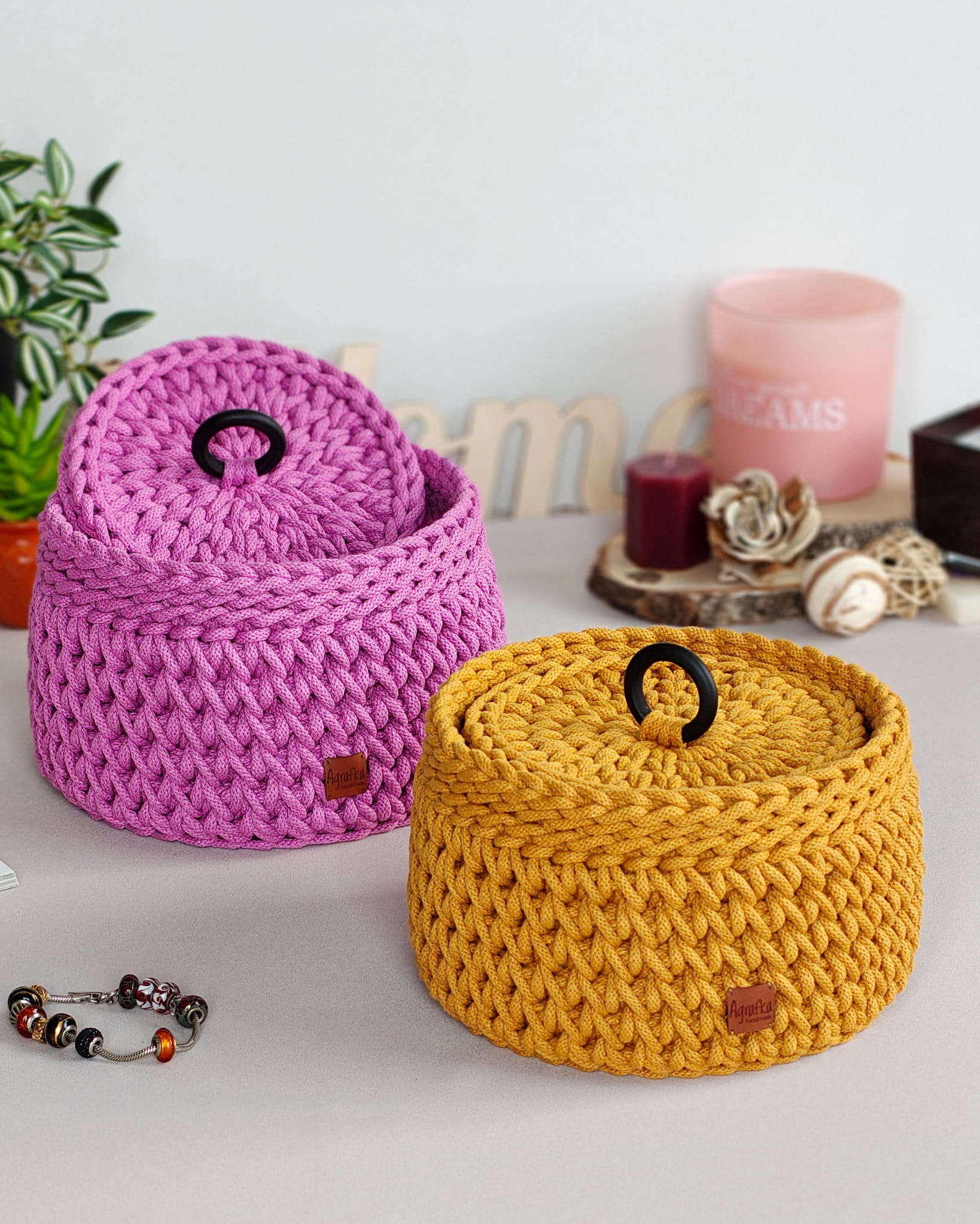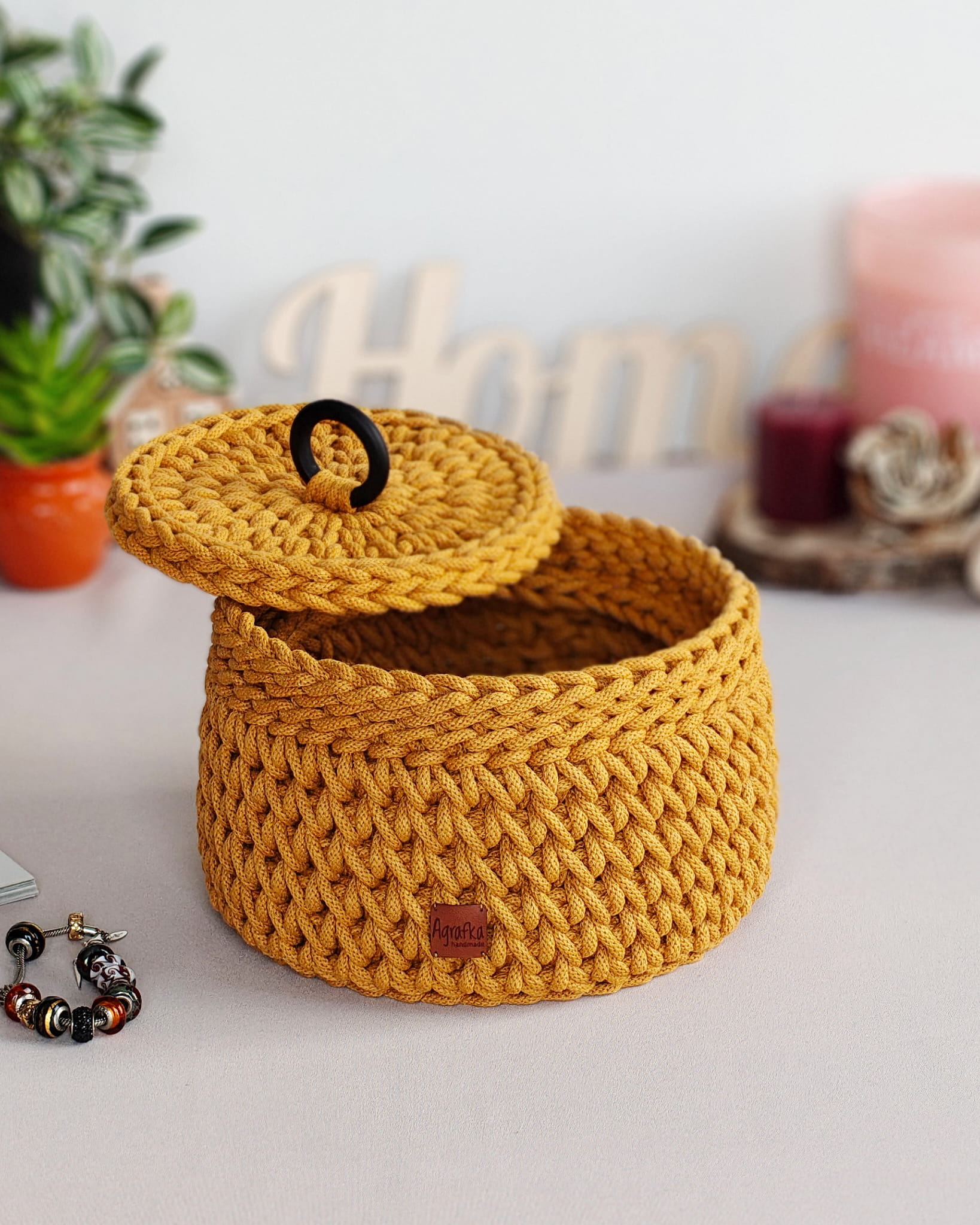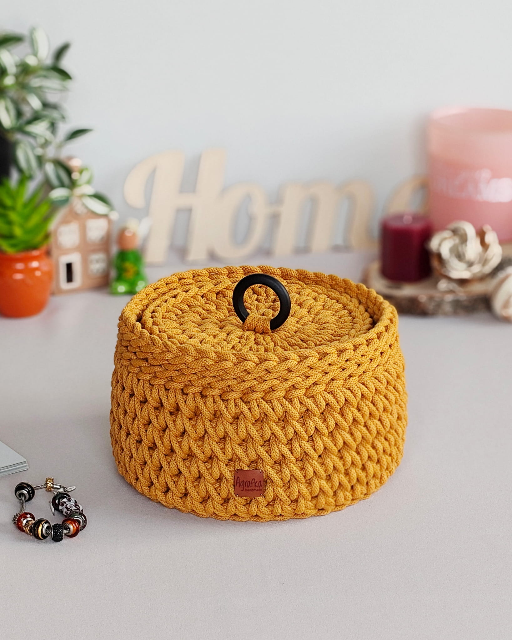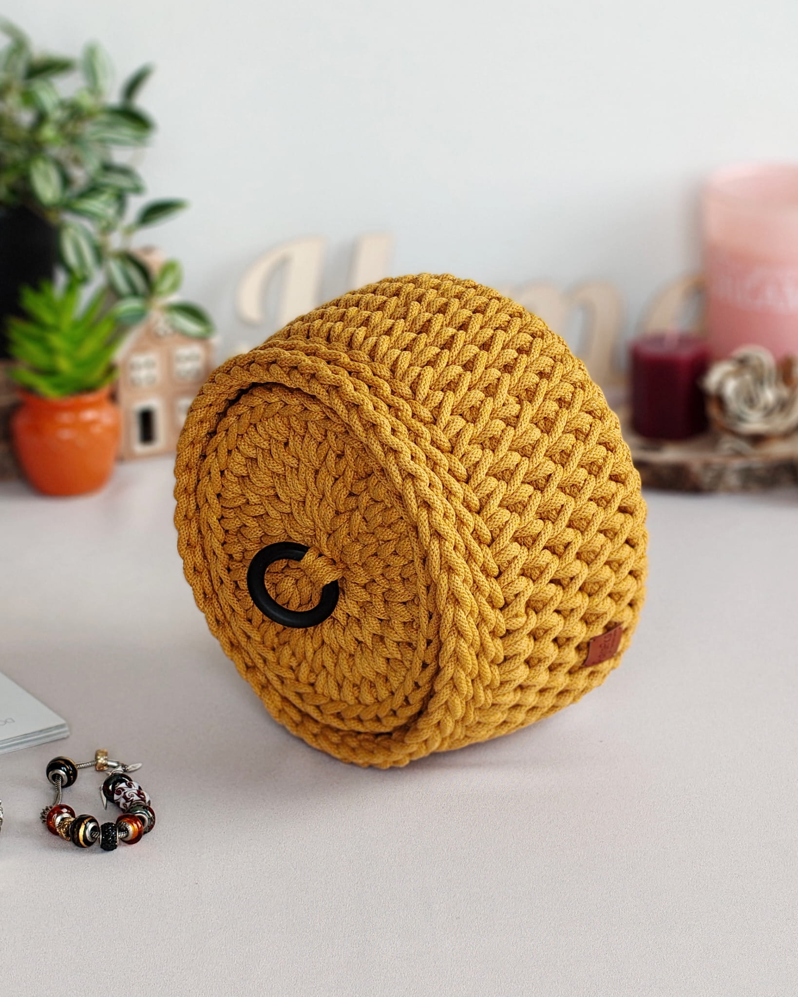 Ten koszyk to praktyczny i estetyczny dodatek do wnętrza, który pomoże utrzymać porządek w codziennych drobiazgach. W całości wykonany ręcznie z grubego, wysokiej jakości sznurka bawełnianego, zachwyca swoją strukturą i solidnym wykonaniem.