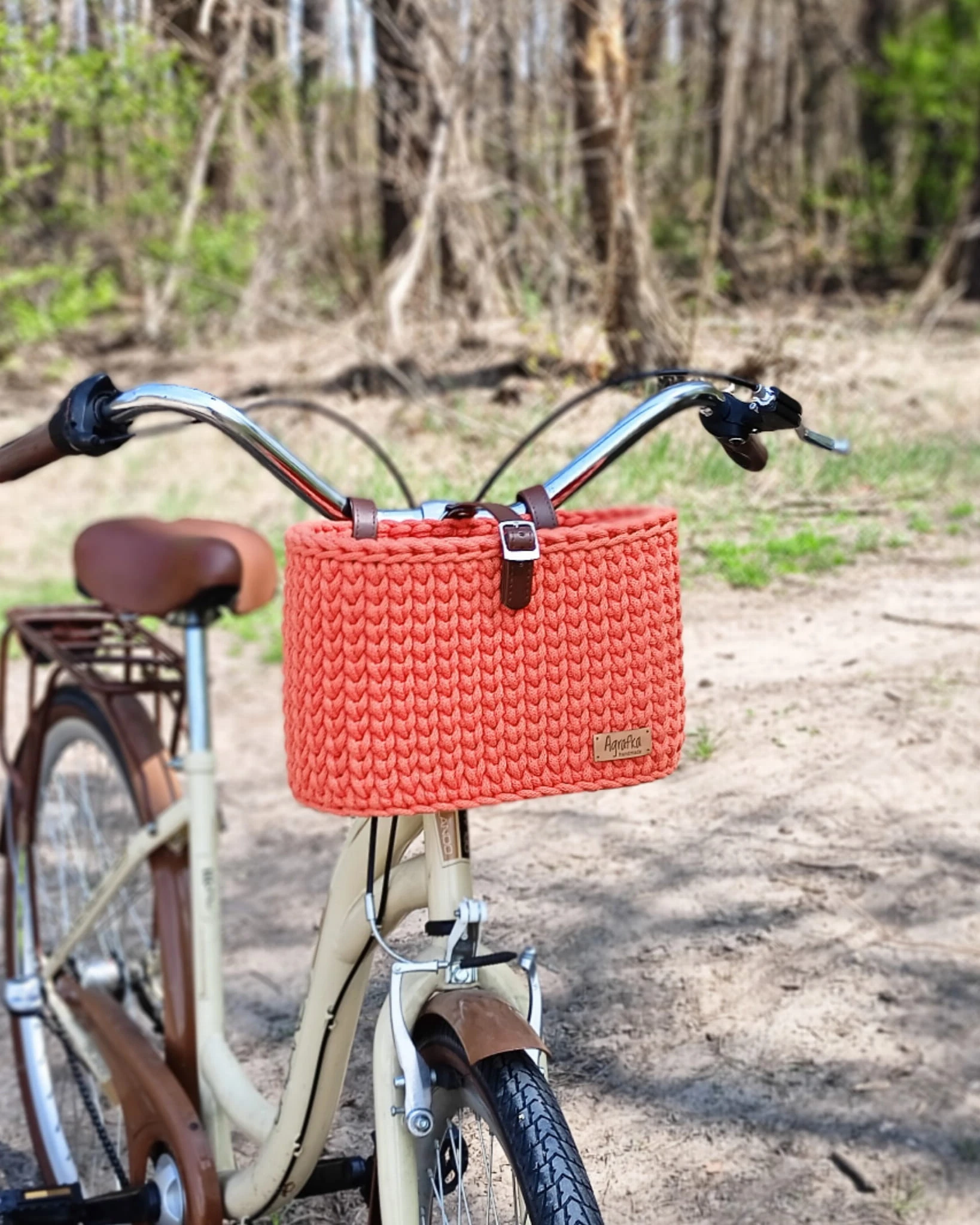 ręcznie robiony koszyk rowerowy