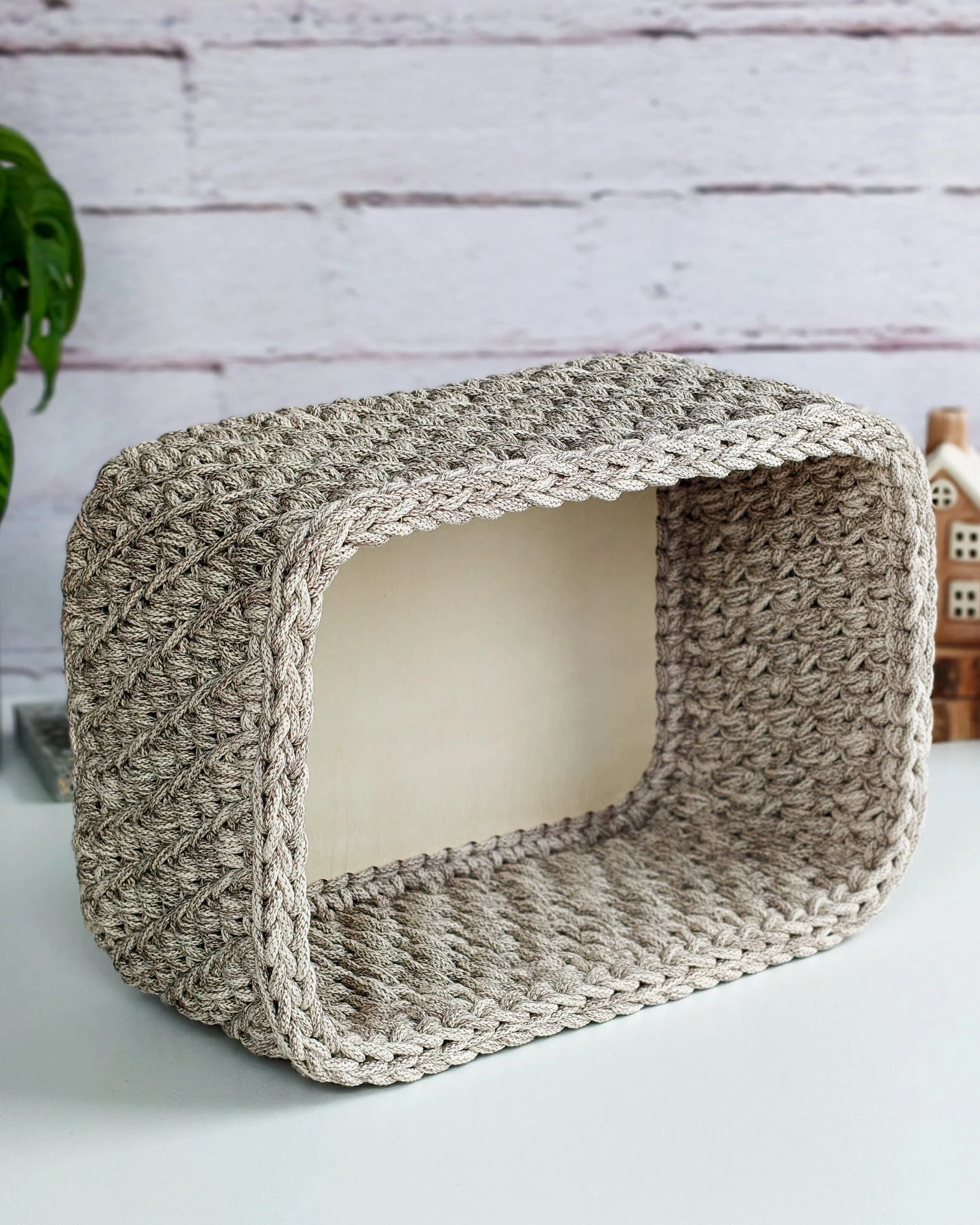 Ręcznie wykonany koszyk prostokątny ze sznurka bawełnianego na solidnej drewnianej bazie. Praktyczny organizer do domu – dostępny w kilku rozmiarach i szerokiej gamie kolorystycznej.