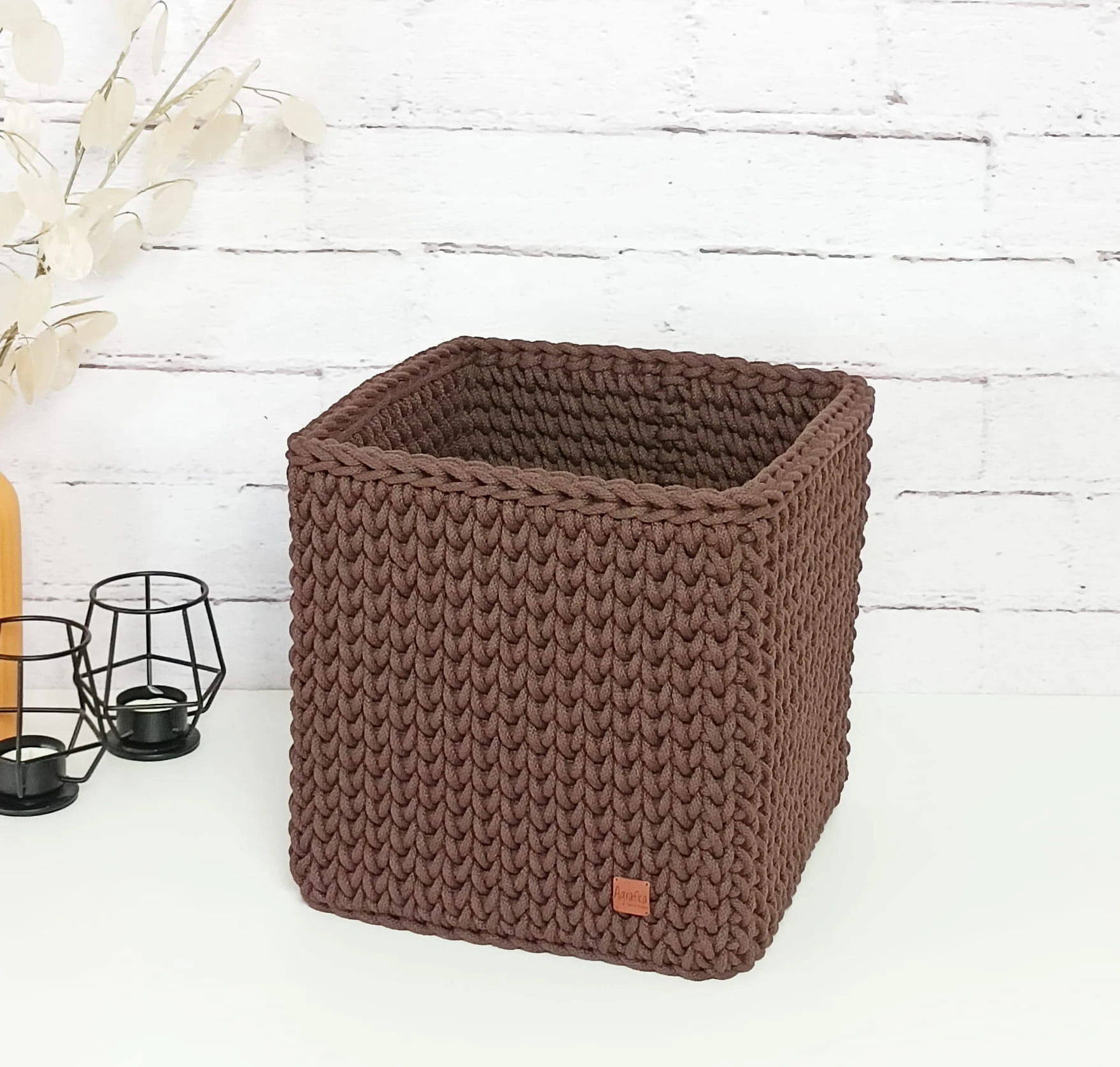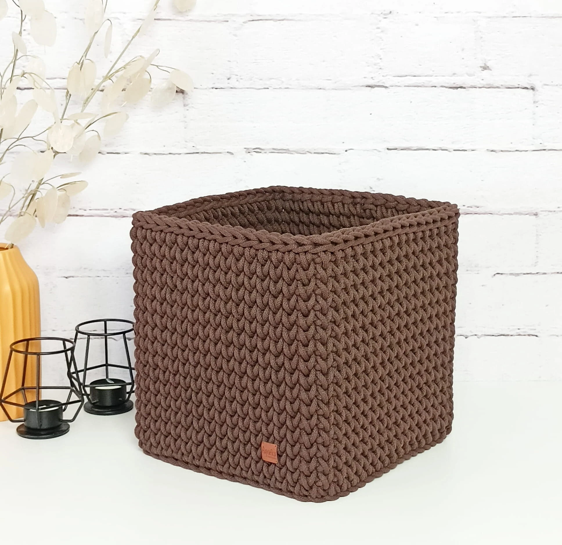 Kwadratowy koszyk szydełkowy ze sznurka bawełnianego – organizer handmade