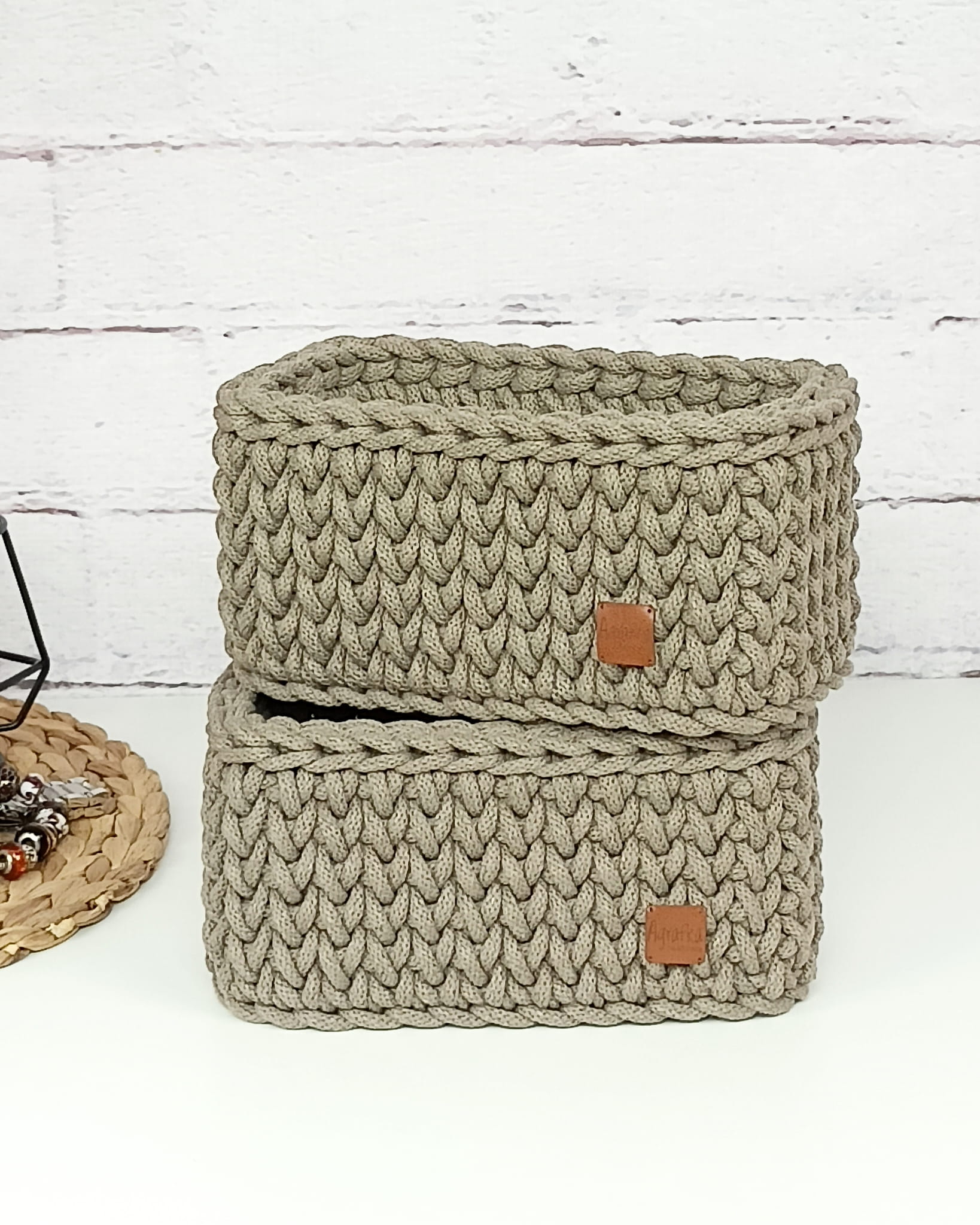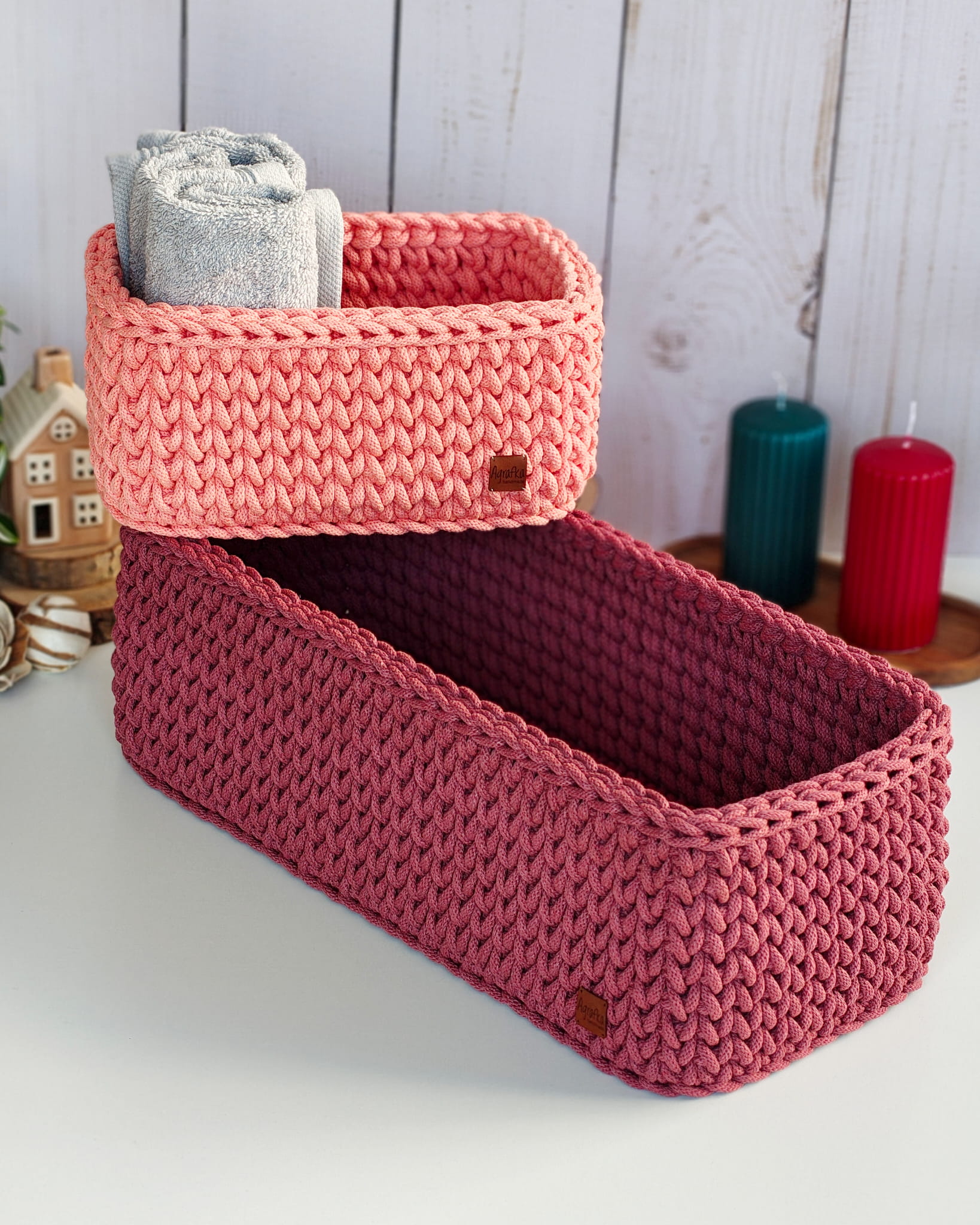 Stylowy i funkcjonalny prostokątny koszyk szydełkowy, wykonany w całości ręcznie z wysokiej jakości sznurka bawełnianego. To praktyczny dodatek do wnętrza, który pomoże utrzymać porządek, a jednocześnie doda przytulnego, naturalnego charakteru każdej przestrzeni.
